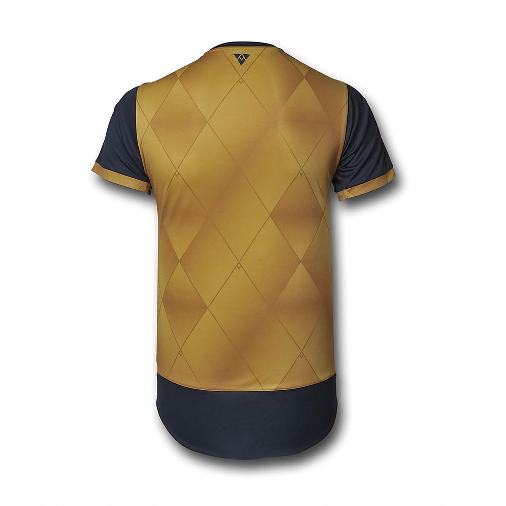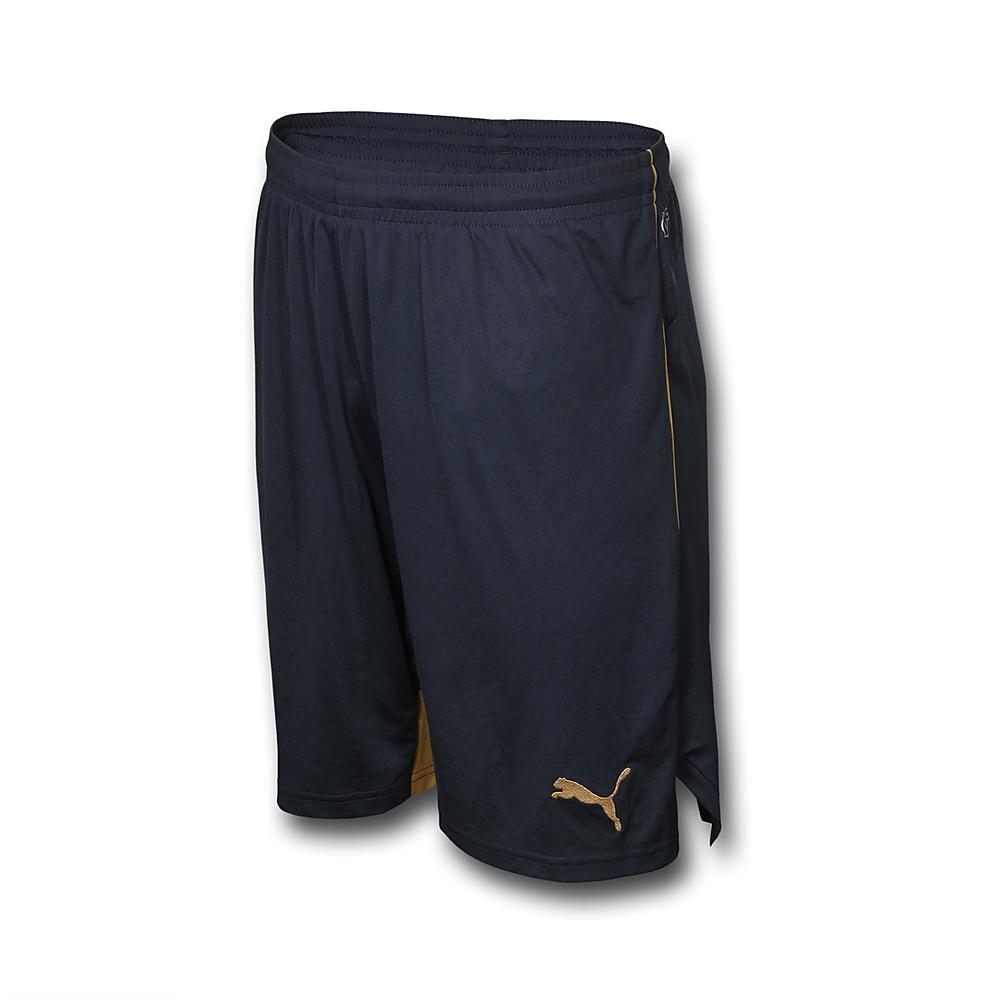 ![]() Արսենալը և Puma ընկերությունը ներկայացրեցին ակումբի 2015/16 մրցաշրջանի նոր հյուրընկալվող մարզաշապիկը: Մարզաշապիկը ոսկեգույնի և մուգ կապույտի հետաքրքիր համադրություն է և ներկայացված ադամանդե կառուցվածքով եռաչափ պատկերով, որոնք տեղակայված են առջևի և հետևի մասերում: Օձիքը V-աձև ձևավորում ունի, իսկ ուսերը, թևքերը և շապիկի ներքևի հատվածը սև գույնով են: Նոր հյուրընկալվող շորտը և գիտրին մուգ կապույտ են՝ ոսկեգույն դետալներով: