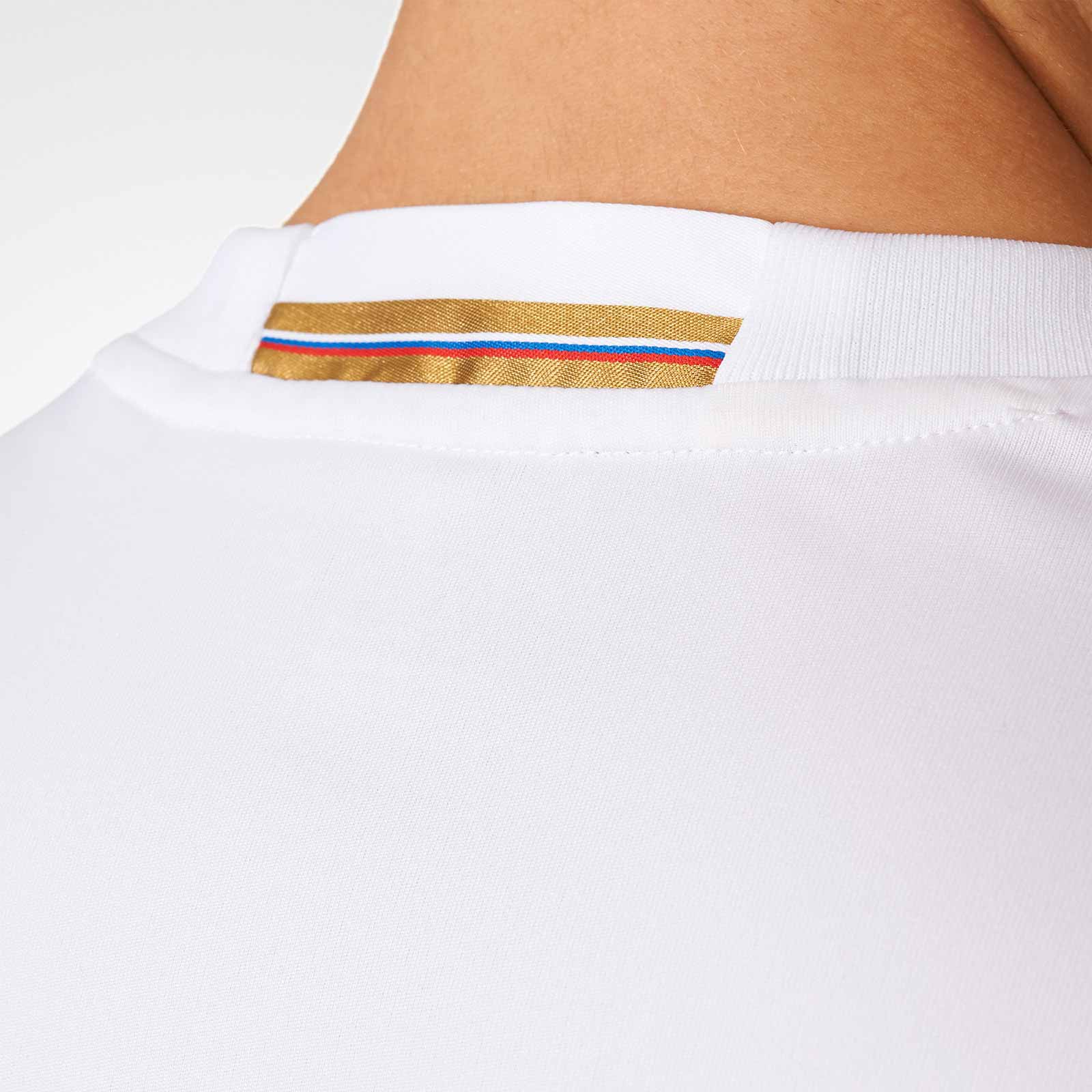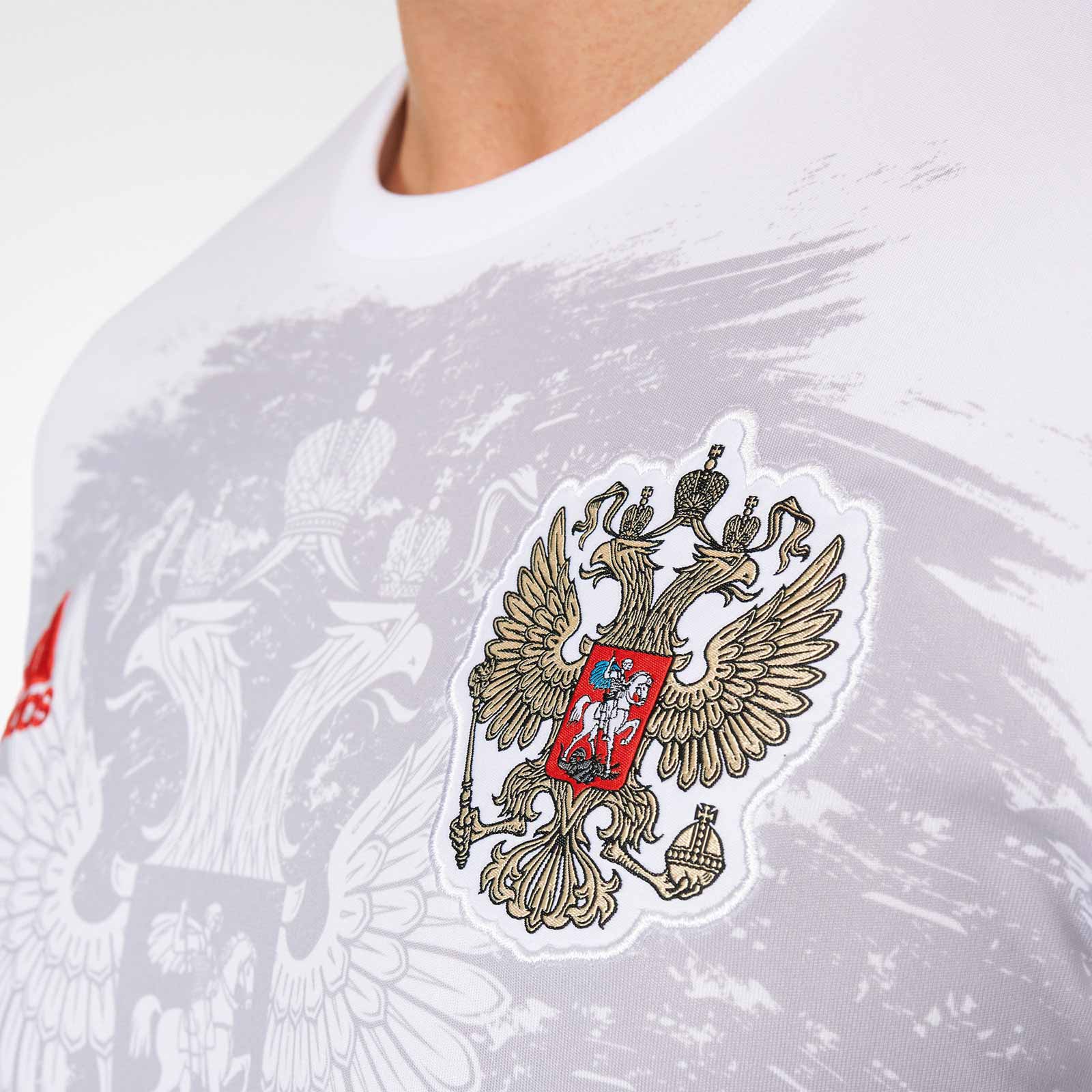 Մարզաշապիկը սպիտակ գույնի է՝ առջևի մասում Ռուսաստանի Դաշնության գերբը, ինչպես նաև Adidas- ի լոգոն՝ կարմիր գույնով: