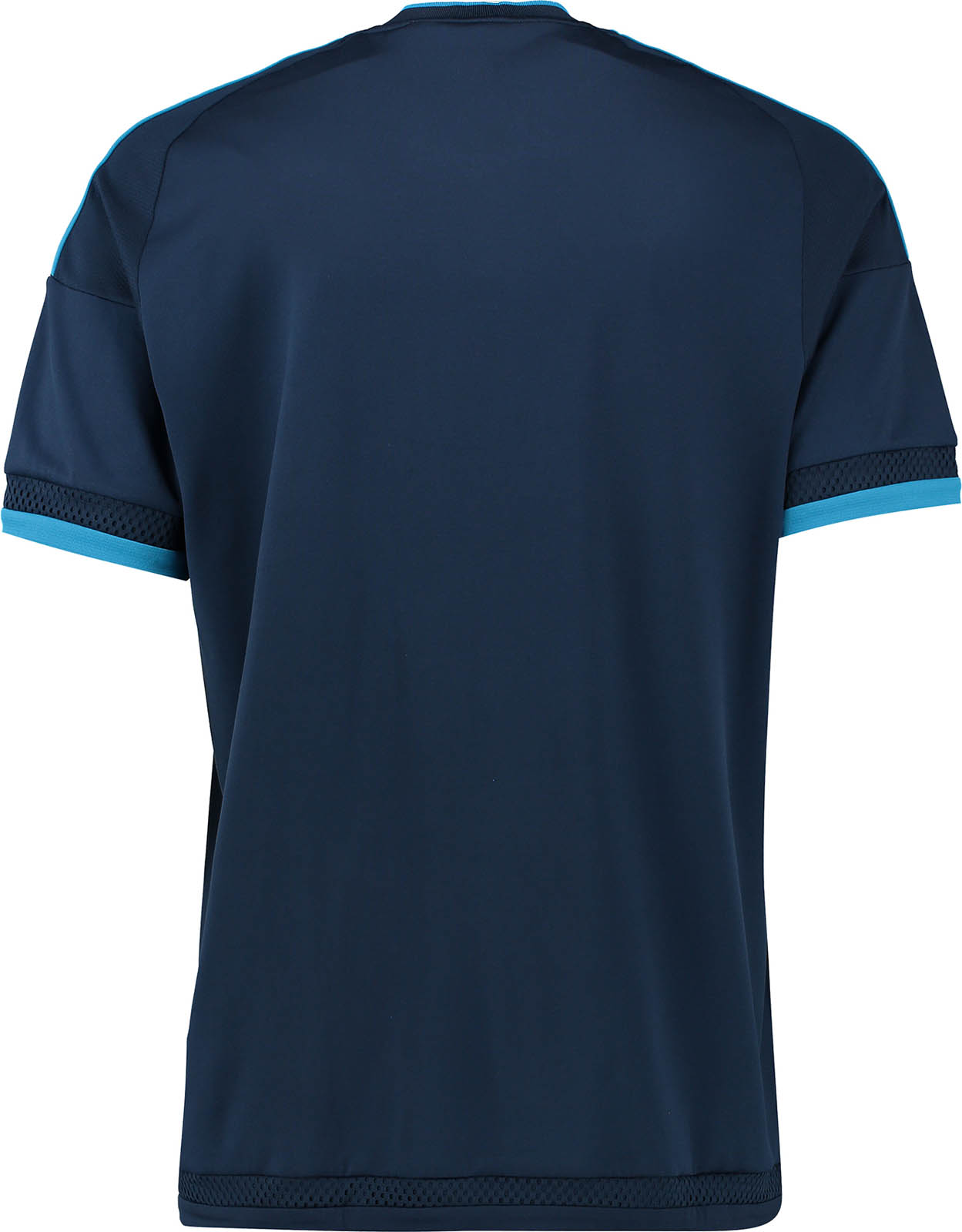 ![]() Ռեալ Մադրիդը և Adidas ընկերությունը ներկայացրեցին ակումբի 2015/16 մրցաշրջանի նոր 3-րդ մարզաշապիկը: Մարզաշապիկը կապույտ գույնի է` երկու տոնայնությամբ՝ ոգեշնչված Մադրիդի գիշերային երկնքից: Adidas-ի ավանդական գծերը երկնագույն են: Ռեալ Մադրիդի 3-րդ մարզաշապիկը նախատեսված է Չեմպիոնների Լիգայի և Լա Լիգայի խաղերի համար: Մարզաշապիկի ներսի հատվածում գրված է "Hala Madrid y nada más" (Hala Madrid և ուրիշ ոչինչ): Հետաքրքրական է, որ Adidas-ի լոգոն տեղաշարժված է մի փոքր վերև, որպեսզի 2014 Club World Cup նշանը փակցվի մարզաշապիկի վրա Adidas-ի լոգոտիպի ներքևում: Adidas-ի և Fly Emirates-ի լոգոները սպիտակ գույնի են: Նոր 3-րդ շորտը և գիտրին նույնպես կապույտ գույնի են: